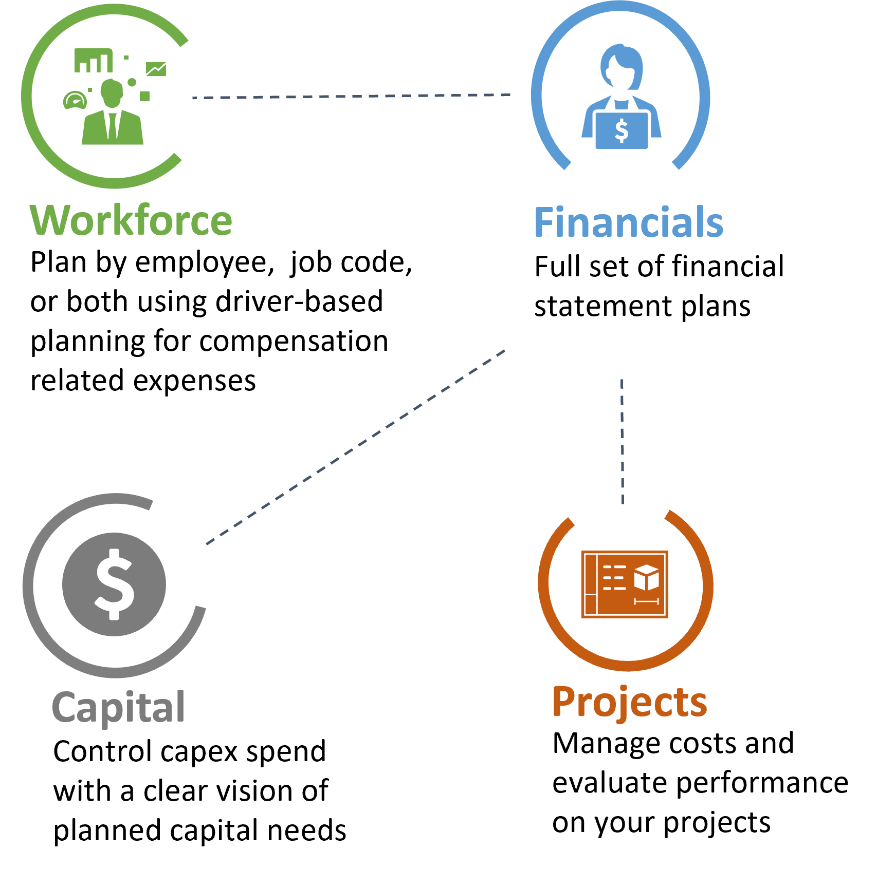 Our Oracle Cloud EPM services offers a comprehensive enterprise performance management (EPM) solution on a common platform, addressing all your needs - across financial and operational planning, consolidation and close, data management, internal and external reporting, and profitability management processes.